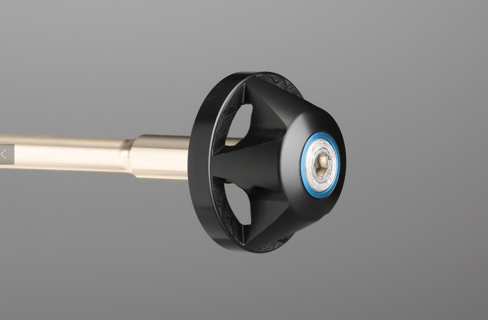 Japan’s most famous accessories and special parts company has teamed up with Lanesplit. Introducing Aella’s front fork sliders for the Kawasaki Ninja 1000. These are hand crafted in Japan. The slider is designed to match the inner rotor of the brake and protects tightly protects up to the axle nut.