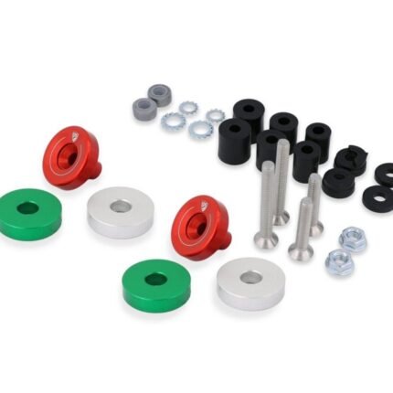 Handlebar counterweights made from solid light alloy using CNC machines and subsequent surface anodization.Ā The kit consists of two counterweights that give a captivating and racing aesthetic, eliminating the original plastic or iron ones.Ā The kit comes with the necessary screws for assembly on all types of handlebars. On motorcycles equipped with standard handguards it will be necessary to remove them.