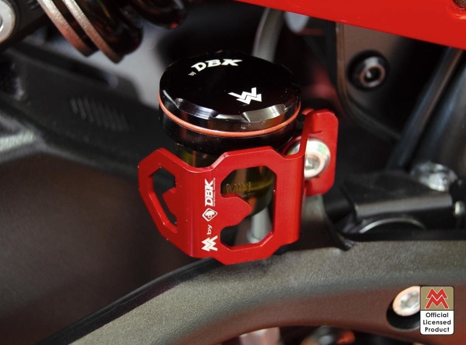 Rear brake fluid tank protection in aluminum alloy.Ā Laser cut with subsequent surface colored anodization treatment.Ā Plug and play