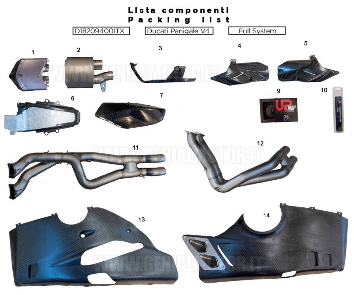 Termignoni offers the new exhaust from the exclusive “4 USCITE” design for the new Ducati Panigale V4. Together with the complete exhaust system, Termignoni supplies a series of accessories that allow perfect assembly to obtain an increase of 14 horsepower.