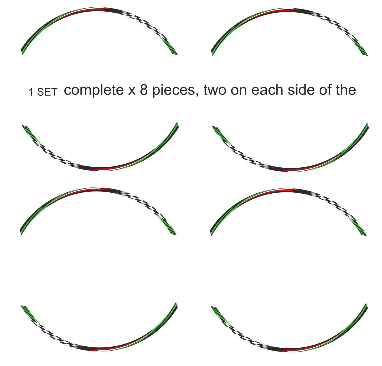 A full wheel set consists of 8 decals + 2 free stickers of Lanesplit and Vulturbike
