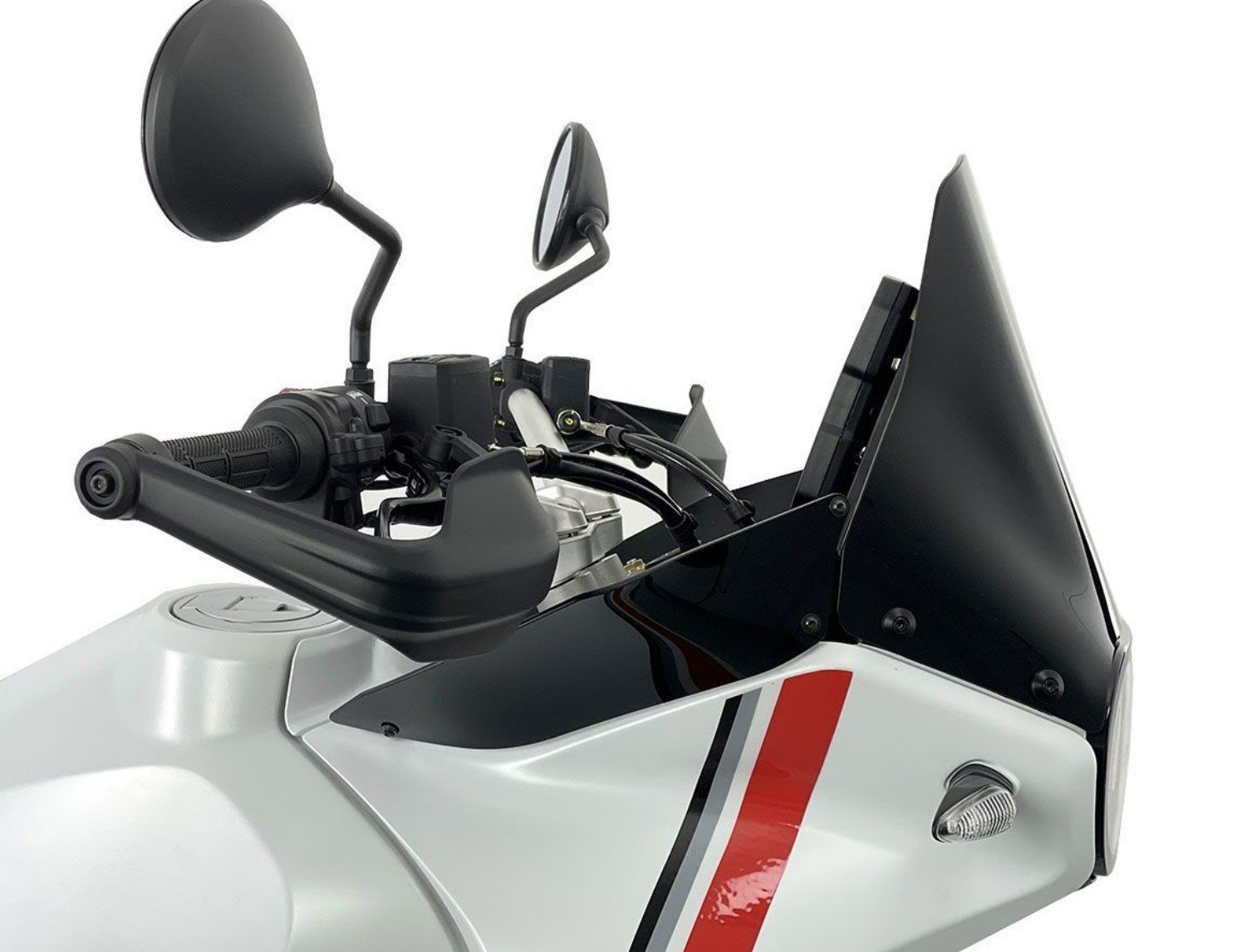 The small size and sporty lines of this windshield give the bike an even more captivating appearance.Ā Compared to the original screen, this Enduro version of ours is 5cm lower and 1cm narrower.